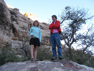 Although almost everything in Las Vegas is open on Thanksgiving, we decided to bypass the multi-course turkey dinners available at all of the high-end restaurants (e.g., $59.95 per person pre fixe at Wolfgang Pluck, not including beverages and gratuity) and have a non-traditional cookout at Redrocks Canyon. Our menu: hamburgers and veggie burgers, sweet potatoes on the grill, green beans with almonds, and pies from Whole Foods for dessert. It was a sunny, cloudless day in the upper 60s. At Willow Creek picnic area there were many other families and lots of kids with the same idea. Great fun. And wild burros.